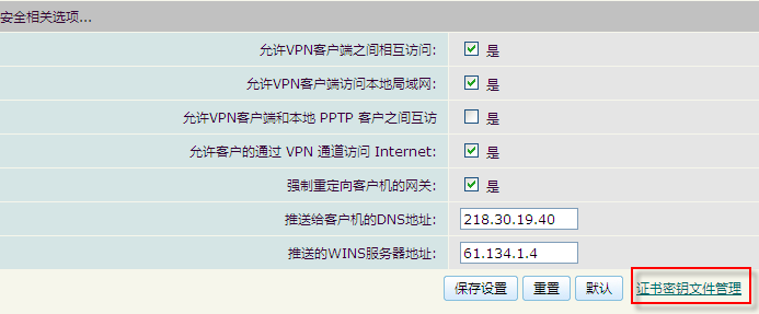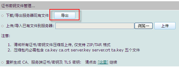 然后将点击此页面下的“证书密钥文件管理”